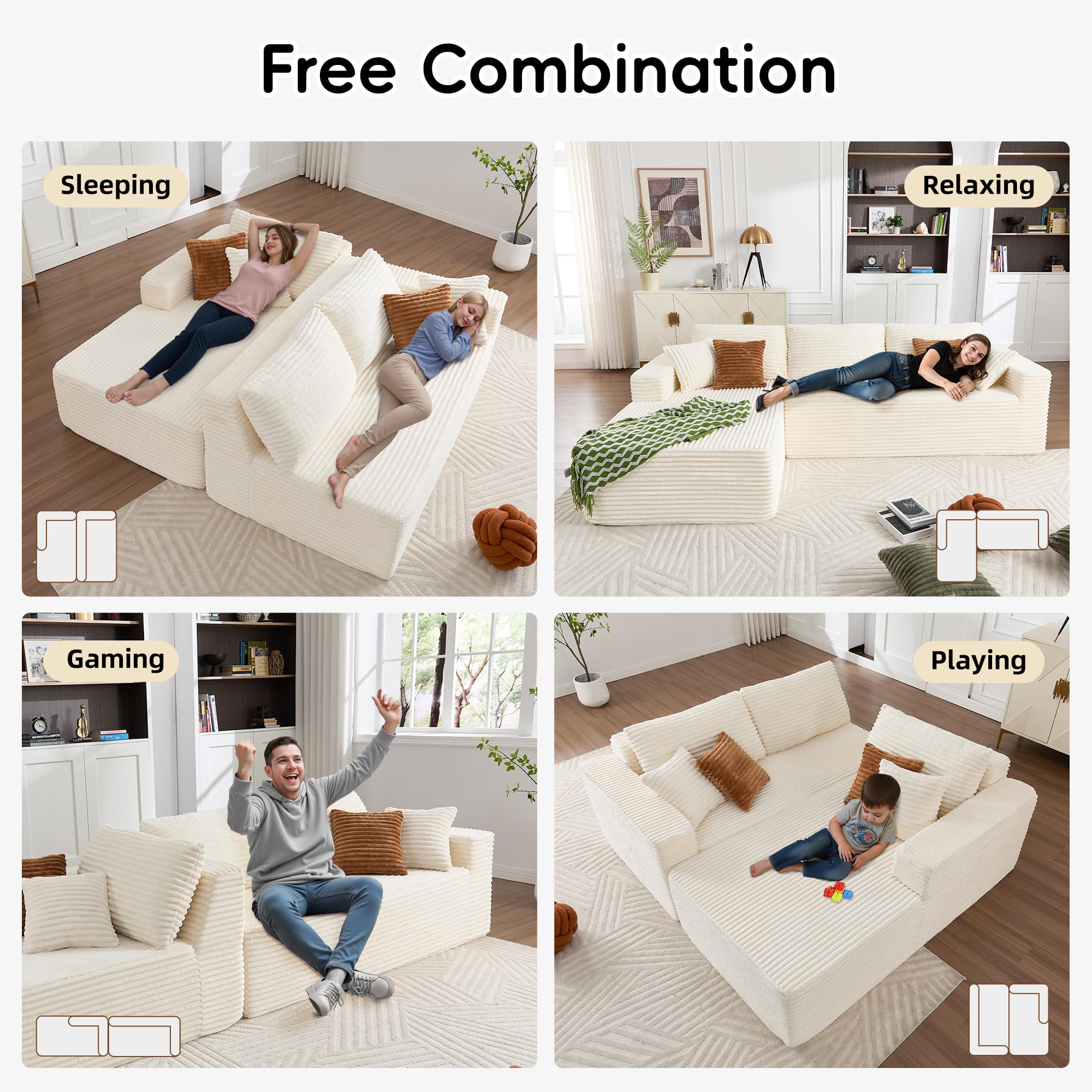• 【Versatile Design for Every Space】Whether you’re looking for an L-shaped couch, a sectional sofa, a cloud sofa, or a couch with a chaise lounge, this versatile sofa has what you need. Designed for living rooms, bedrooms, or play areas, this compressed sofa combines cloud-like comfort with modern style. Perfect for naps, movie nights, gaming sessions, or simply unwinding—it adapts seamlessly to your lifestyle.