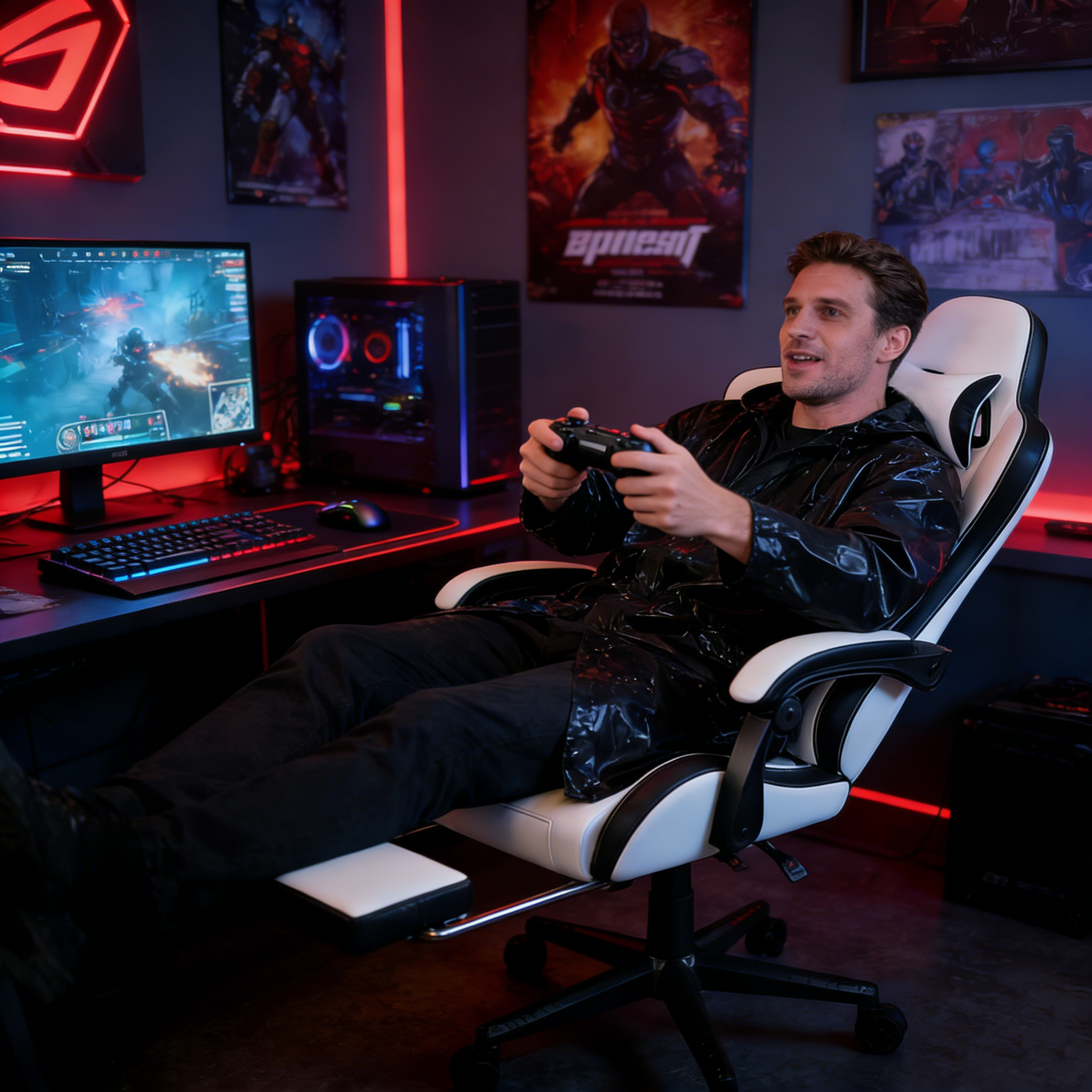 Gaming Chair,Ergonomic Computer Chairs for Adults with Footrest, PU Leather Office Chair with Adjustable Lumbar Support & Pocket Spring Cushion – Heavy Duty 400lb Capacity Gamer Chair