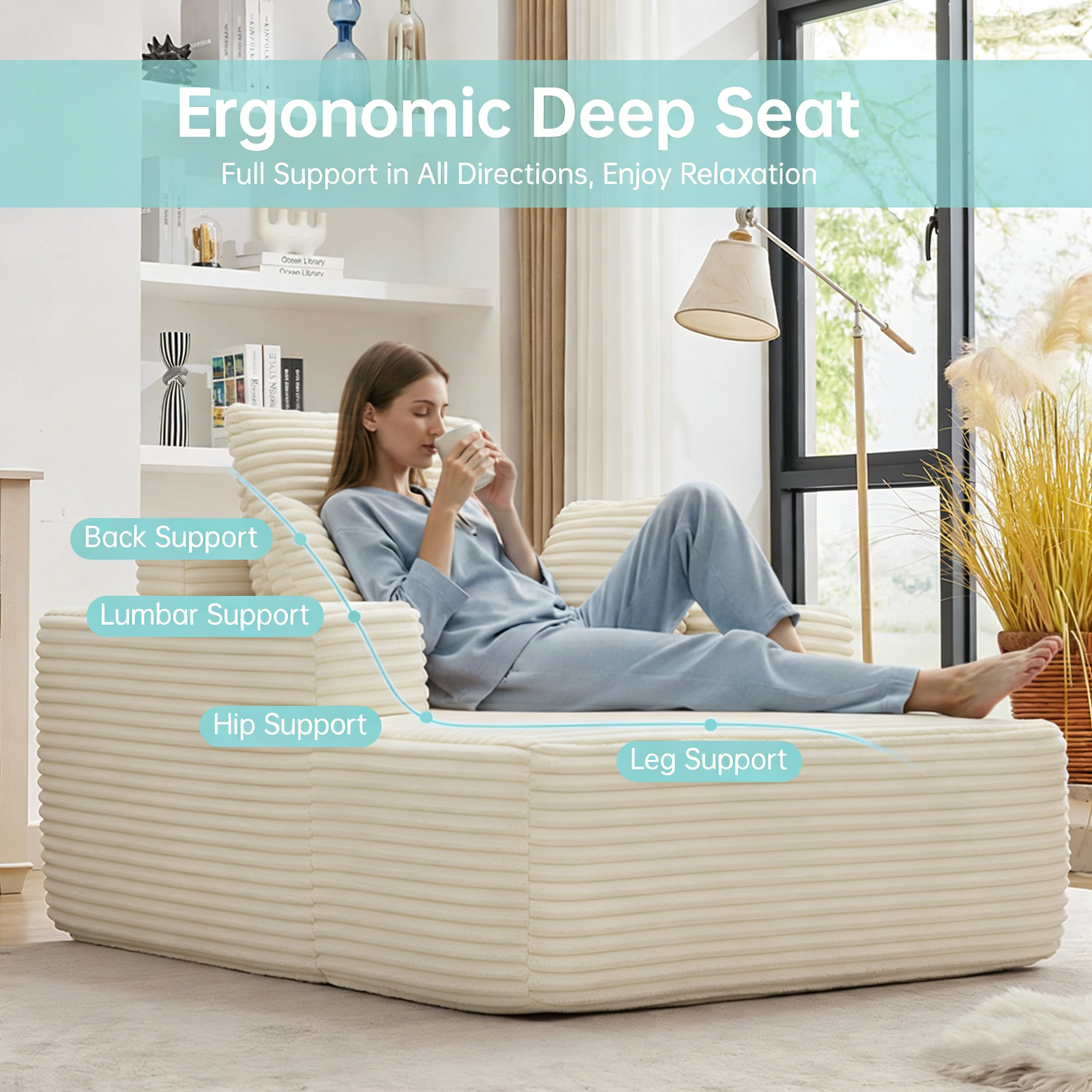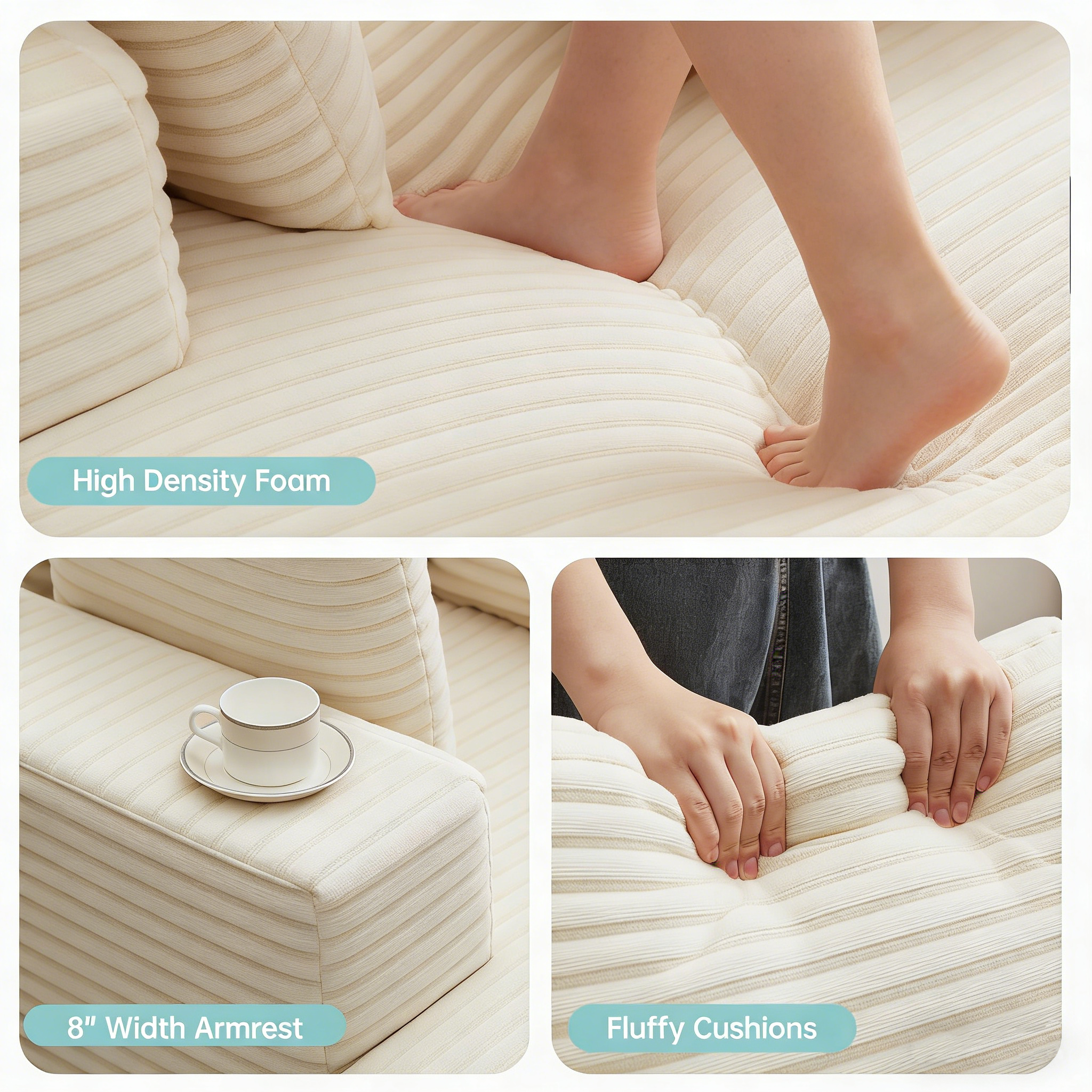 Deep Seat Chaise Lounge—The chaise lounge chair indoor is wrapped in soft and skin-friendly faux fur fabric, showing an attractive striped texture, which looks sophisticated and luxurious. This cloud couch is designed to provide a comfortable and relaxing seating experience. You can sink into its comfort and relax after a long day.ThreeThrow Pillows Included—This contemporary chaise lounge is ergonomically designed with backrest pillow, lumbar pillow, headrest pillow provide comfortable back and lumbar support, combines comfort with functionality. The 8.6 inch wide armrest allows the arms to rest, provides you with loose and leisurely arm support, the fluffy chaise chair brings you into an all-around soft surrounding, allowing the body to endlessly relax after a tiring day.Unmatched Comfort Chaise Couch—The modern sofa comes with a spacious sleeping area, which is enough to meet the needs of you and your family. You can curl up and watch a movie, read a book, or take a nap on the comfy couch. Whether you are tall or like to stretch out freely, you can find the most comfortable sitting or lying position in this oversized chair.Spring Packs Cushion&No Assembly Required—This chaise lounge indoor provides support and a cushioned feel, which improves the overall comfort of the chaise lounge. Springs help absorb the impact of repeated use and prevent the cushions from deteriorating quickly. This extends the life of the chaise lounge sofa and reduces the need for frequent replacements.Easy to Clean—The bottom of this Chaise sofa sits directly on the floor, ensuring added stability and firmness. This design not only enhances the overall structure but also minimizes hard-to-reach areas that tend to collect dust and dirt. With fewer gaps, cleaning is a breeze, allowing you to maintain a tidy and hygienic living space with minimal effort.Absolute Excellent Customer Service—We offer 1-Year 100% satisfaction guarantee. 3 -Year Warranty for Quality-Related Issues, If you have any question, please contact us and we will provide you with a solution.