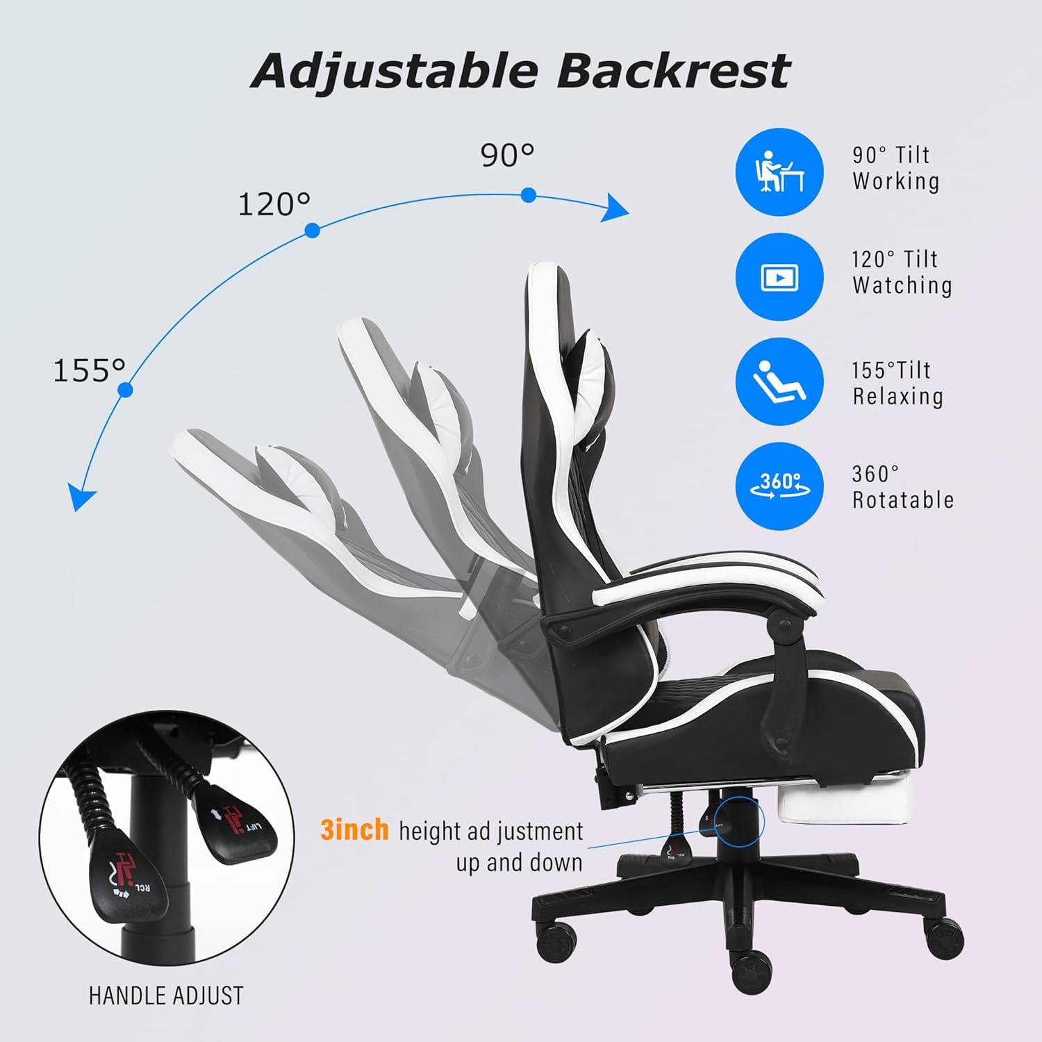 Suitable for Gaming or Working—Opiesit is dedicated to making the better gaming chair and creates a more comfortable seating experience for gamers and office workers.360° Swivel, chair back can be reclined at any angle between 90°-155°for working, gaming, reading or napping ,retractable footrest for sleeping.
