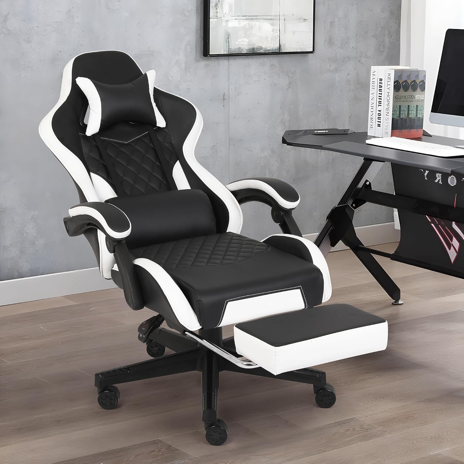 Gaming Chair, Computer Gaming Chairs with Footrest, Linkage Armrests and Lumbar Support, High Back Ergonomic Office Chair for Adults, Big and Tall Desk Chair
