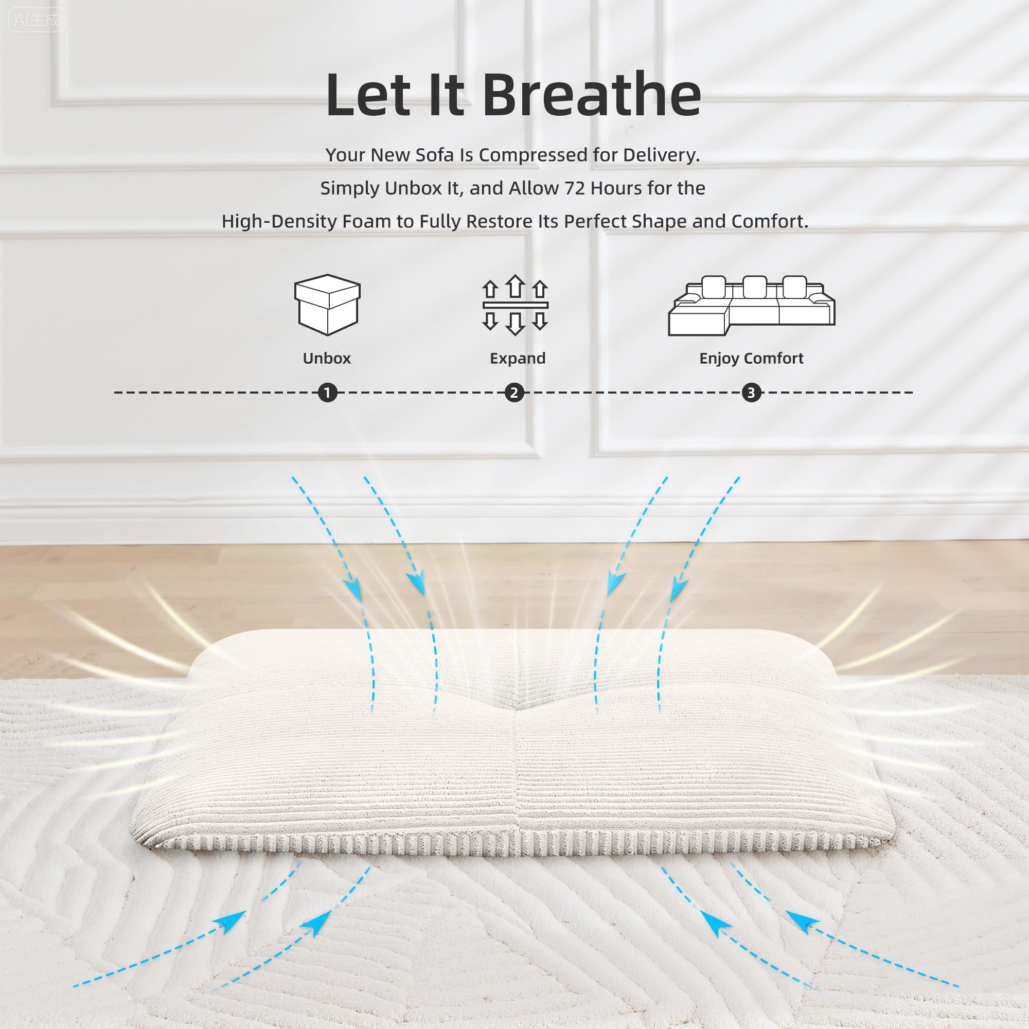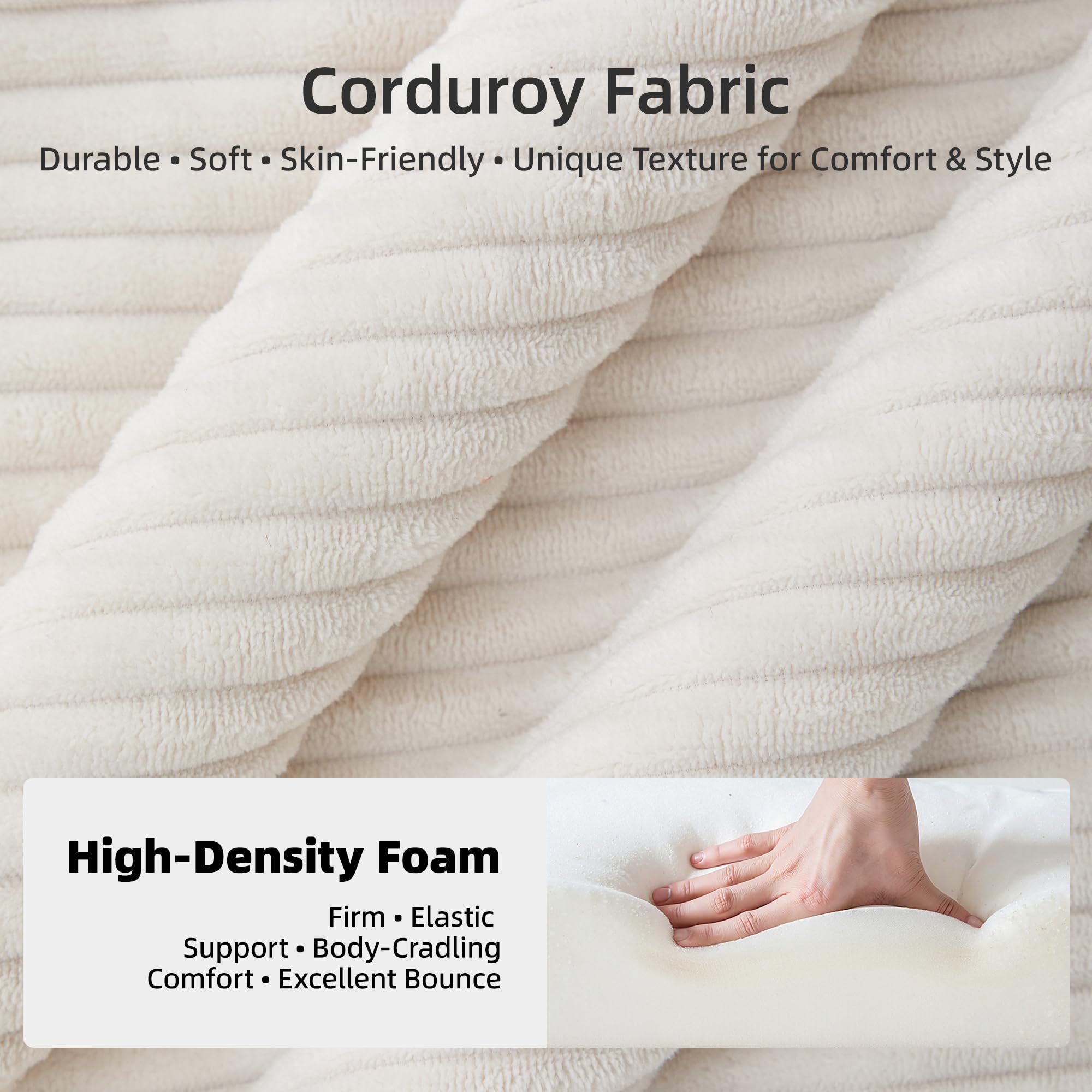 Soft Spacious Could Sofa Bed: Our comfortable flexible modular combination sofa couch features super deep seats. 118.1″ width, 27.8″ deep seats, and 15″ wide armrests.The chaise lounge crafted with a high-resilience sponge structure, which is durable and and super comfortable. Excellent sofa for relaxing for living room, apartment, bedrooms, guest quarters, and kiddo’s play zonesModular Sectional Couches: This l shaped modular sectional sofa includes several indiviual modules & Movable Ottoman, you can rearrange them to suit your needs. No matter you like loveseat, lounges, chairs, L-shape Sofa or sectional sofa bed, this customerized design can help you to adapt the seating to different situation and space sizes to meet your needs. Absolutelly a versatile and practical furniture to your home!Soft & Comfortable Corduroy Couch: This High-Density foam structure boneless couch upholstered in luxurious softness plush corduroy fabric, unbelievably soft! The unique texture provide you a super warm touch, like sinking into a cloud. The gentle color provides your space sophistication. Just hug warm and soft by using our cloud coucEasy to Clean & No Assembly Cloud Couch: No assembly anymore! Our corduroy upholstery couches for living room delivered conveniently vacuum-compressed, just unwrap and wait for a moment, and then enjoy our comfy modular couch.Within 72 hours, with lightly pat, reach a state of total fluffy. Also, the bottom of this sectional sofa sits directly on the floor. Minimizes hard-to-reach areas and reduce the dust and dirt collect. Easy to clean!Comfort & No Assembly Sofa Couch & Excellent Customer Service—We put all the parts in TWO boxes for easy transport and sometimes they arrive at different times. We offer 1-Year 100% satisfaction guarantee. 3 -Year Warranty for Quality-Related Issues, If you have any question, please contact us and we will provide you with a solutin